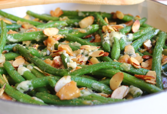 Anyway, to make a long story short, I’ve finally done a green beans almondine video, but added roasted garlic and blue cheese to it, just in case any of my old classmates are watching. I actually did this at Thanksgiving, sans nuts, and it got rave reviews, so I had a feeling the addition of the slivered almonds would work just fine, and they did! I hope you give this a try soon. Enjoy!